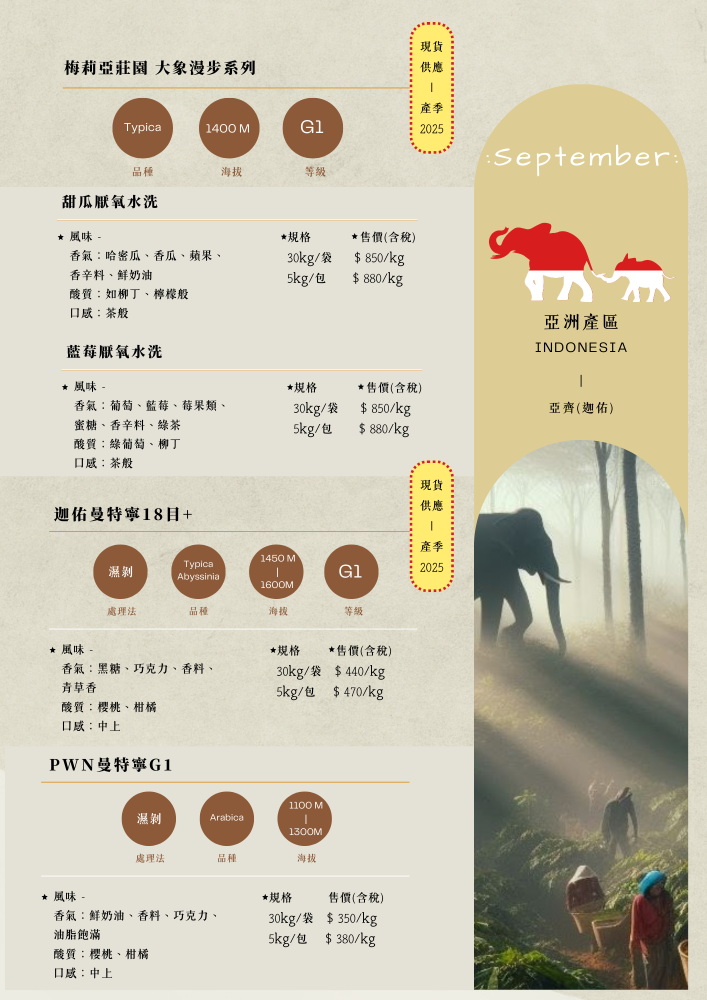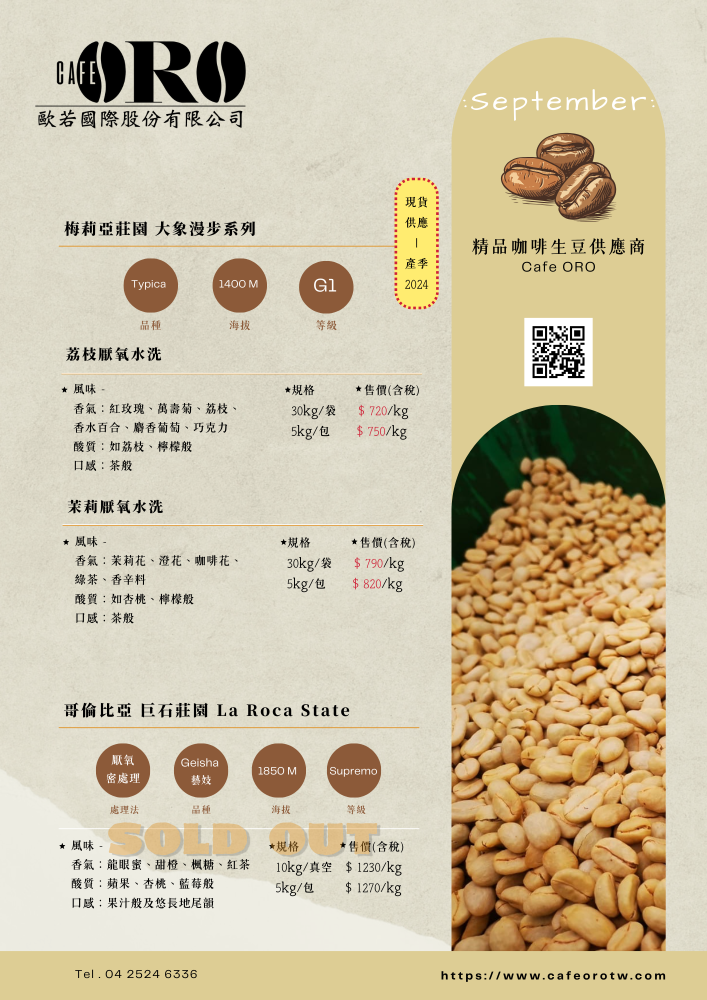✦9月生豆報價單