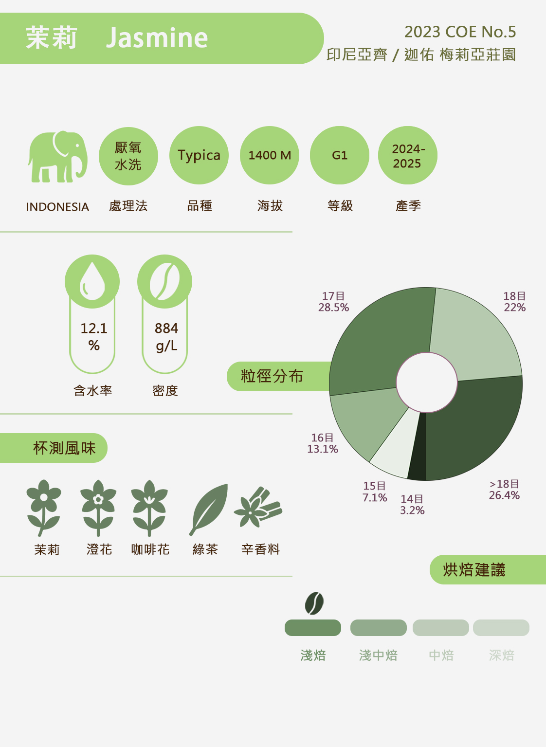 採完熟咖啡果實並去除果皮及部分果膠,緊接著活化特殊酵母菌種後加入氣密桶進行厭氧發酵72小時,至發酵完成再將生豆移至曬場乾燥8~12小時,讓生豆乾燥、硬化並去除完羊皮層(Parchment)後,再次加入原發酵液以GrianPro包裝進而避光厭氧8~12小時後取出至曬場乾燥至含水量低於12%。